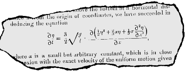 The article was based on De Vries' Ph.D. thesis, in which he proved that the 'solitary wave', discovered and described by the Scottish engineer John Scott Russell about half a century earlier, really could keep its form. Many scientists, including Lord Rayleigh, had believed that this wave too would smooth out in the long run, as it should according to `linear science', such as the waves caused by a stone thrown in a pond. However, the KdV-equation contains a non-linear part which compensates this dispersive effect.
