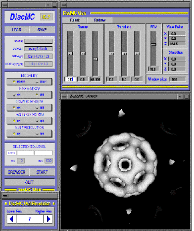 A view of the DiscMC system's graphic interface. The isosurfaces in the