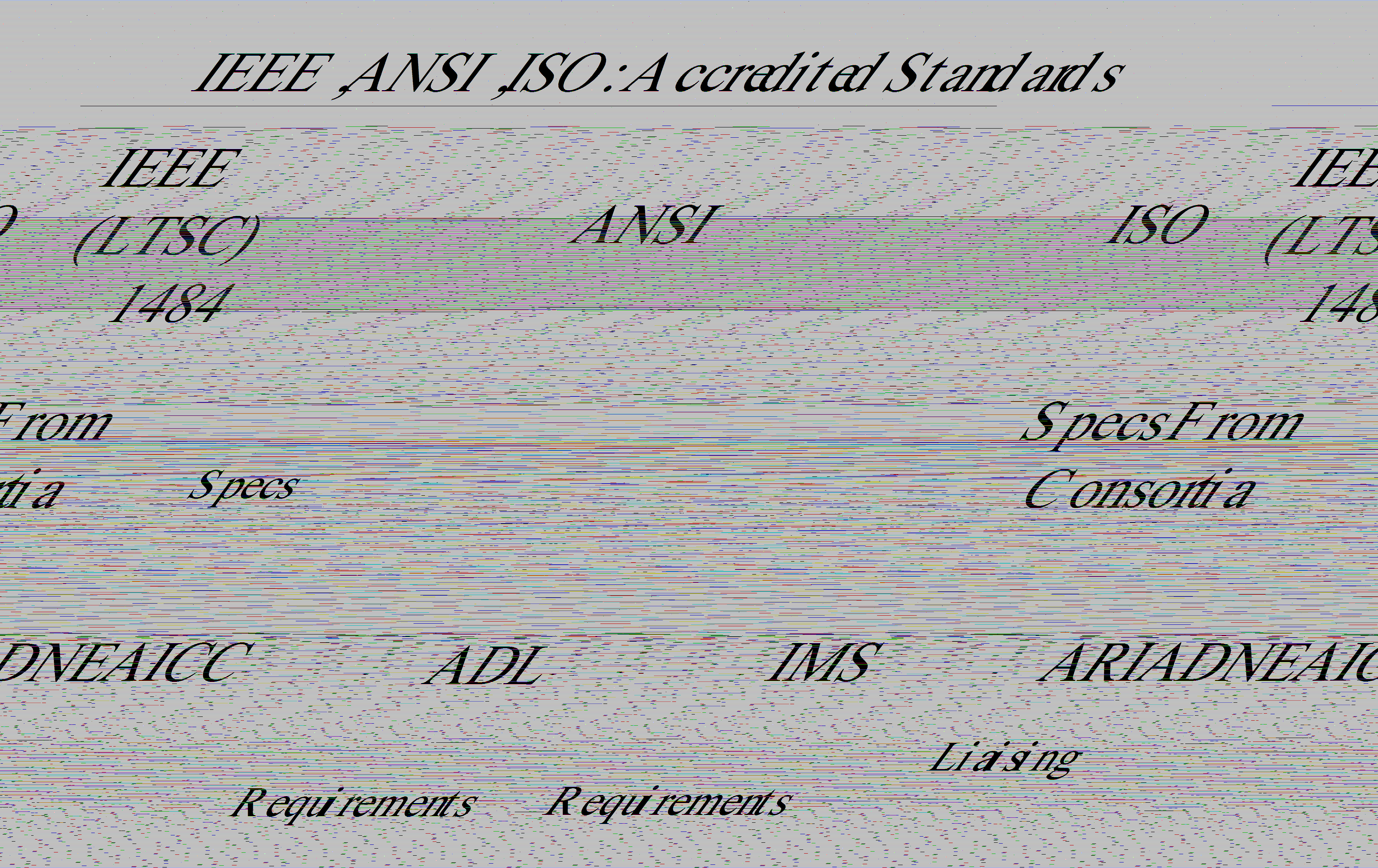 The current standardization activities in the area of computer based learning are the result of the concertation of the efforts of these and other organizations, as the next figure tries to illustrate.